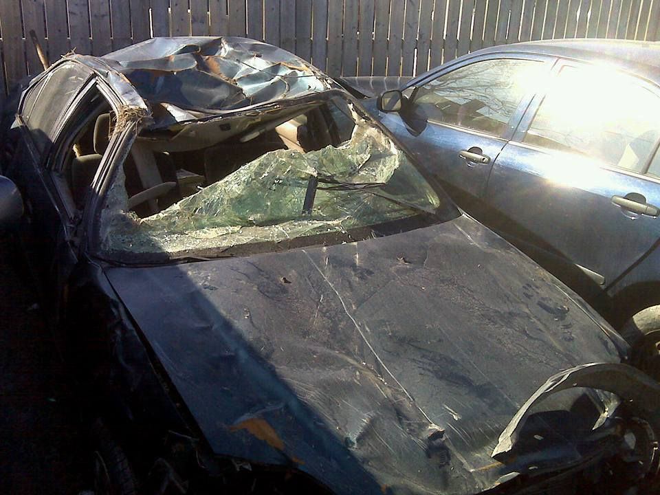 When 7-months pregnant with their first child, while out on a ride with him for the paper route he had picked up on the side to help with the expected child, the same old argument came up again about her family and how he felt slighted by them. In no mood for this, the argument escaladed and her husband swerved the car off the road where it tumbled down into a ditch and landed upside down. Stef had to break through the back windshield and crawl out between the shards of glass to flag someone down to help. Her main concern was the safety of her unborn child, the argument and everything else was now meaningless, as she had to make sure the baby wasn’t injured. Her husband begged her not to tell that it had been done in anger. The car was totaled.